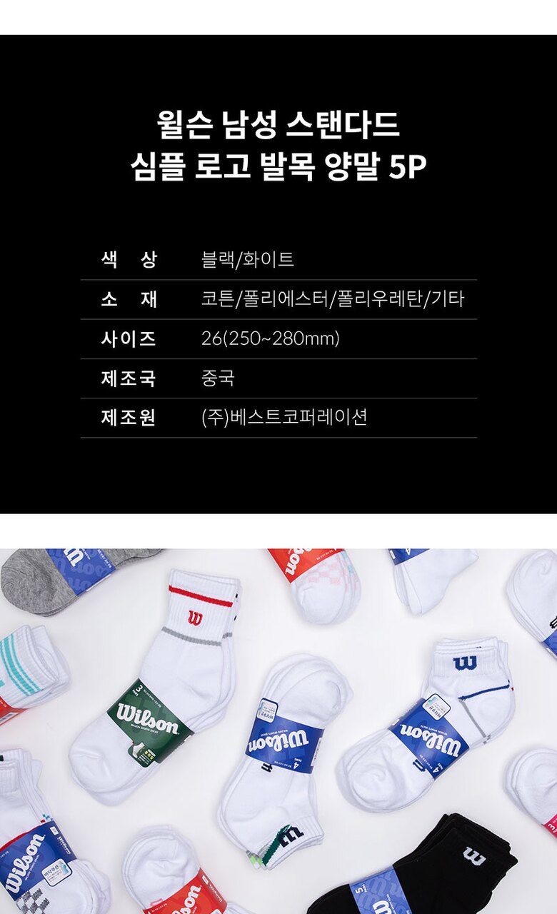 윌슨 남성 스탠다드 심플 로고 발목 양말 5P_BKWH