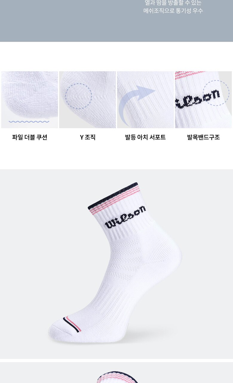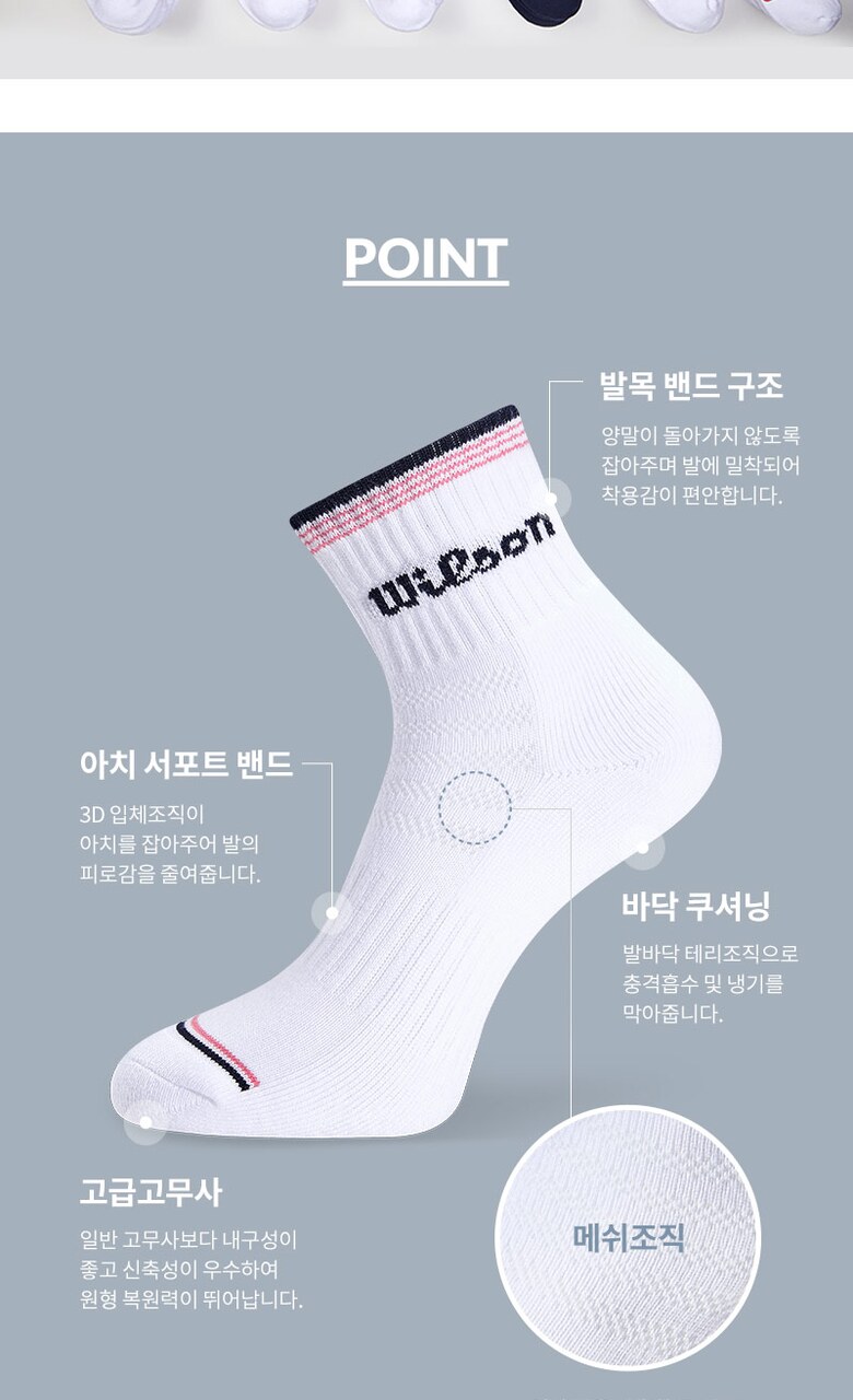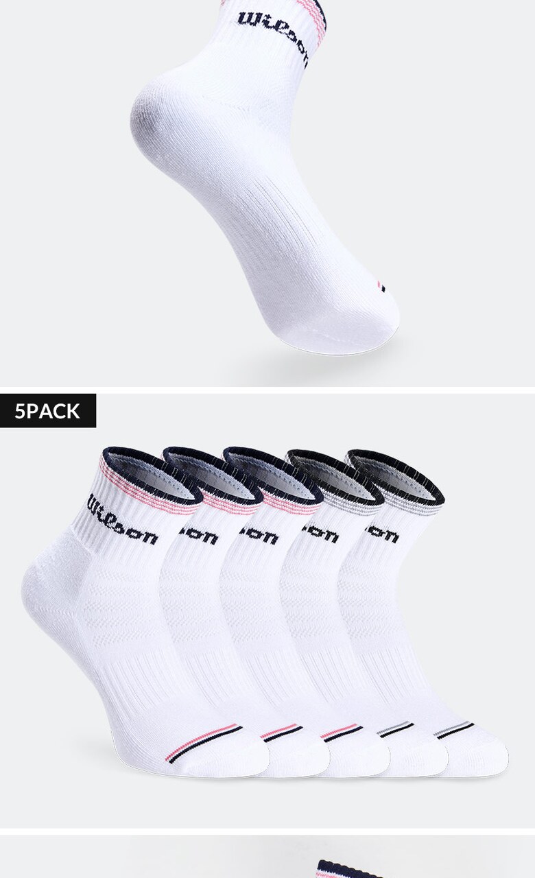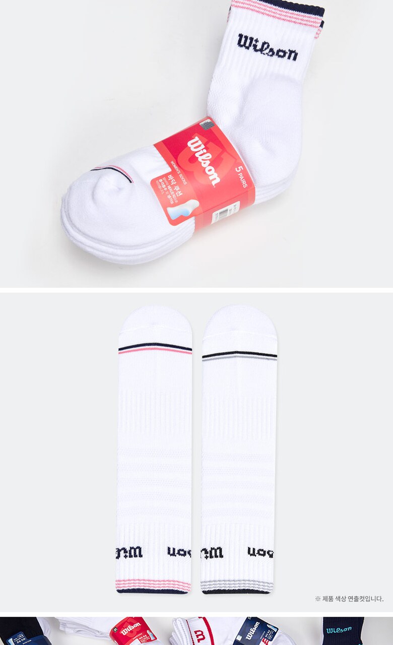 윌슨 여성 스포츠 쿠션 라인 컬러배색 중목양말 5P_MX