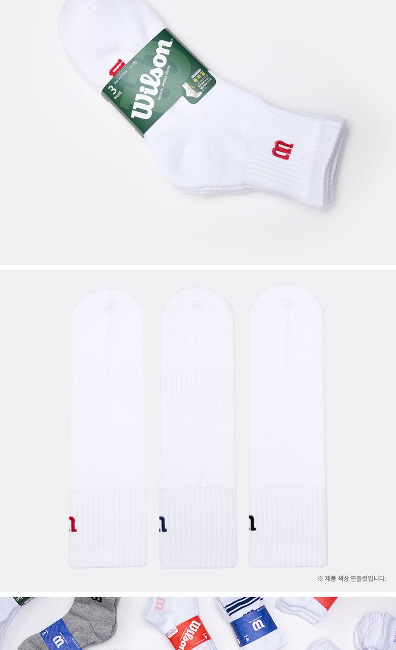 윌슨 남성 스포츠 쿠션 통파일 스탠다드 자수로고 중목 양말 3P_MX
