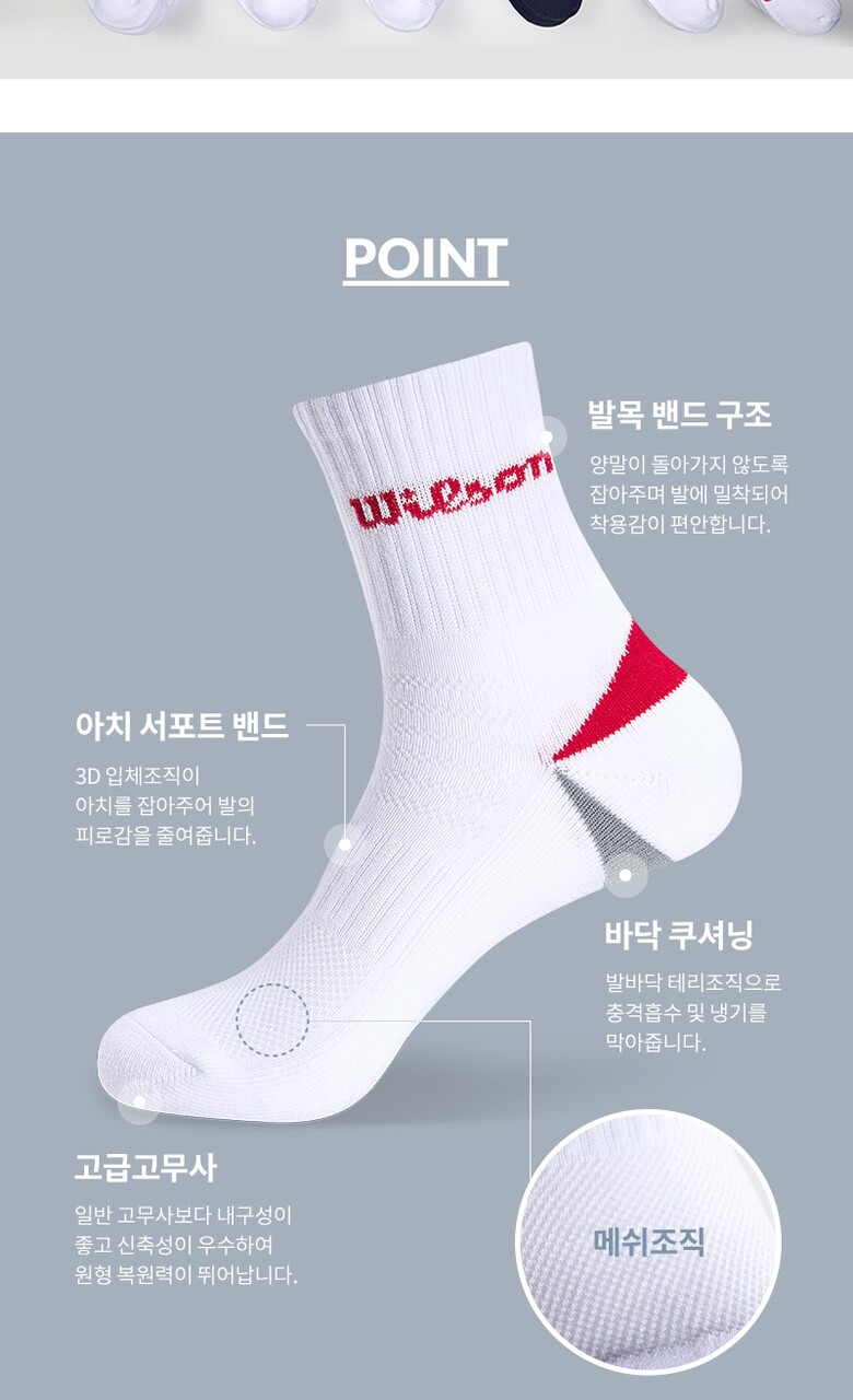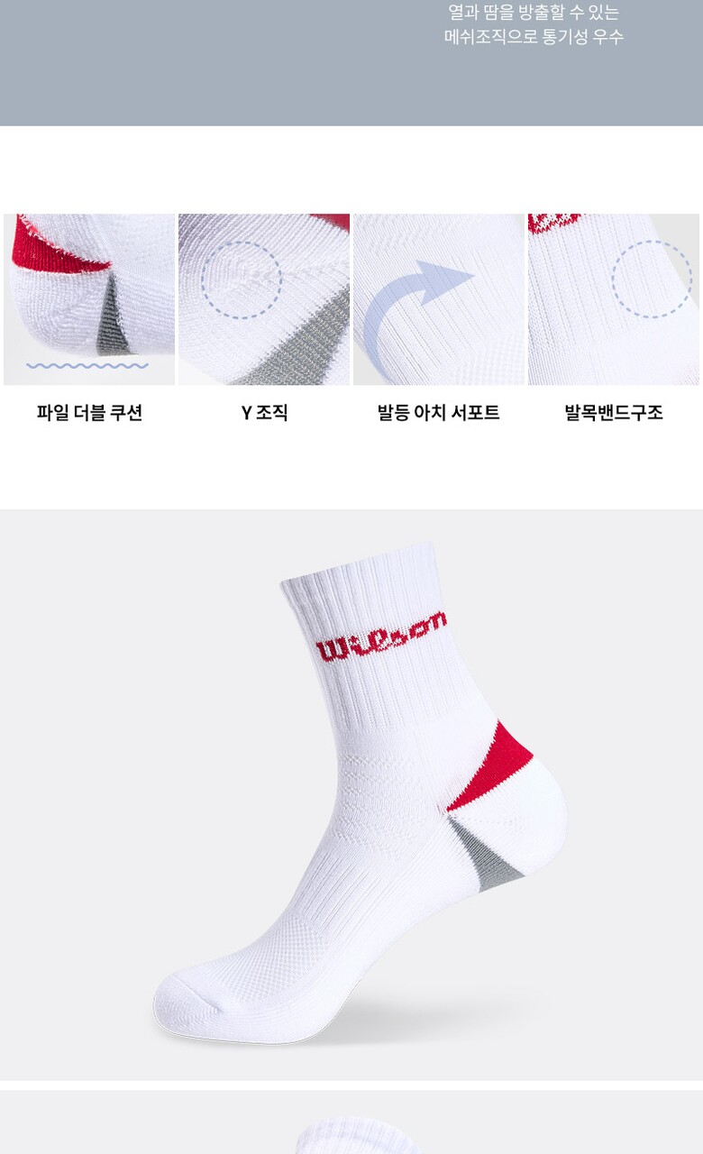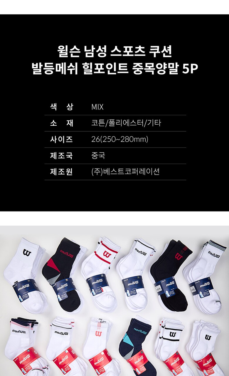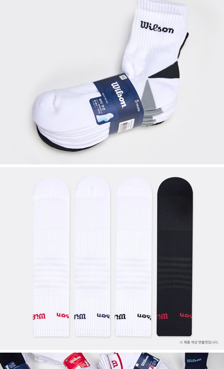 윌슨 남성 스포츠 쿠션 발등메쉬 힐포인트 중목양말 5P_MX