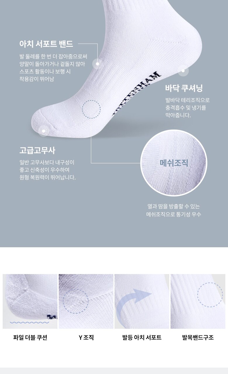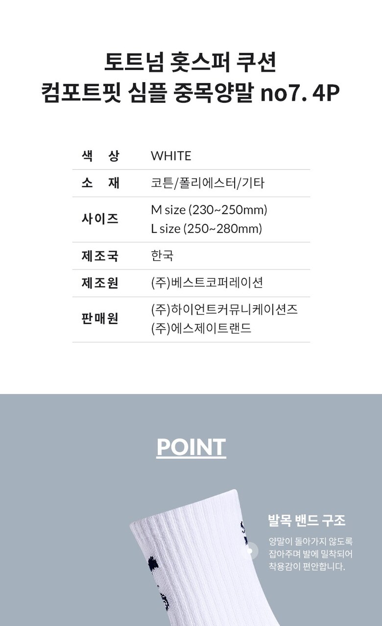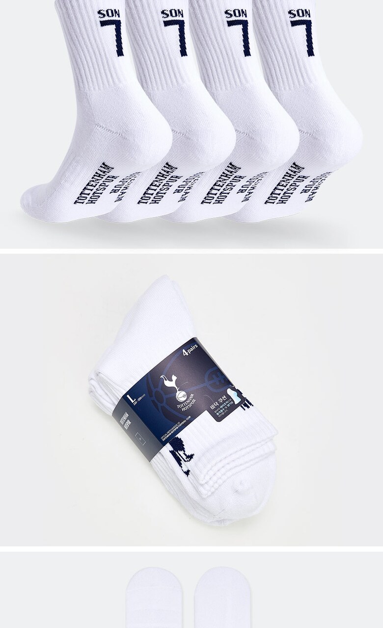 토트넘 쿠션 컴포트핏 심플 중목양말 no7. 4P_WH