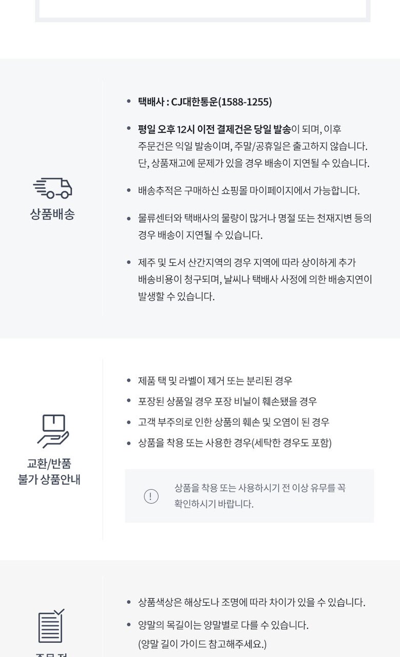 상품불량에 의한 반품, A/S, 품질보증 및 피해보상 등에 관한 사항은 소비자 분쟁해결기준(공정거래위원회 고시) 구매자가 미성년자인 경우에는 상품 구입시 법정대리인이 동의하지 아니하면 미성년자 본인 또는 법정대리인이 구매취소 할 수 있습니다. |