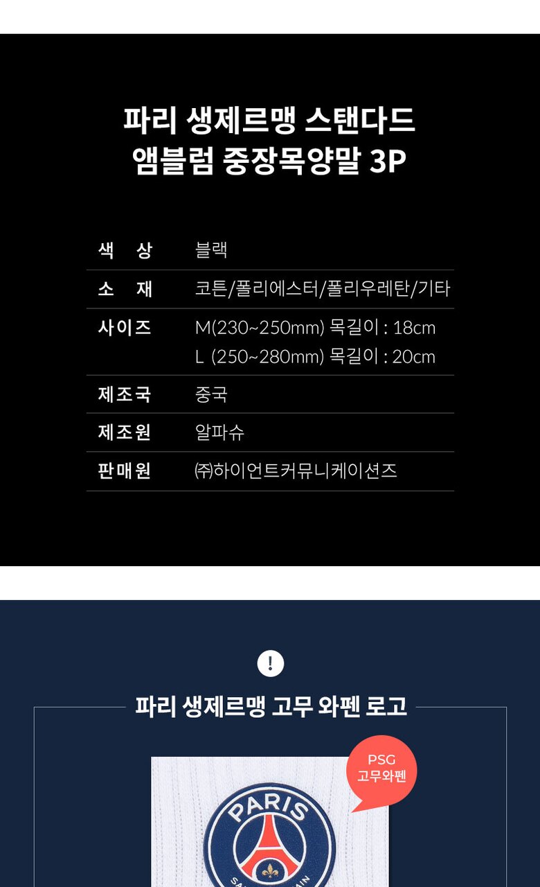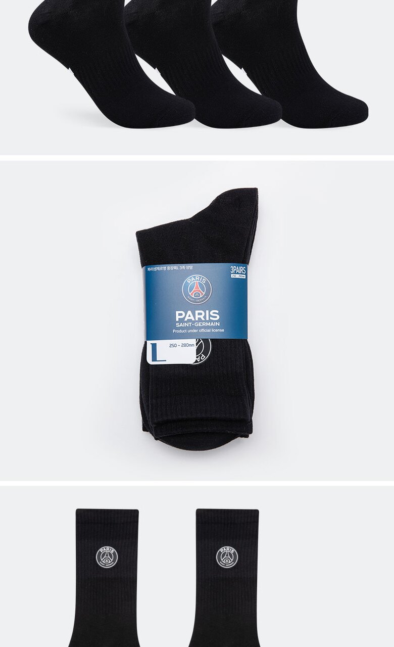 PSG 파리 생제르맹 스탠다드 앰블럼 중장목양말 3P_BK