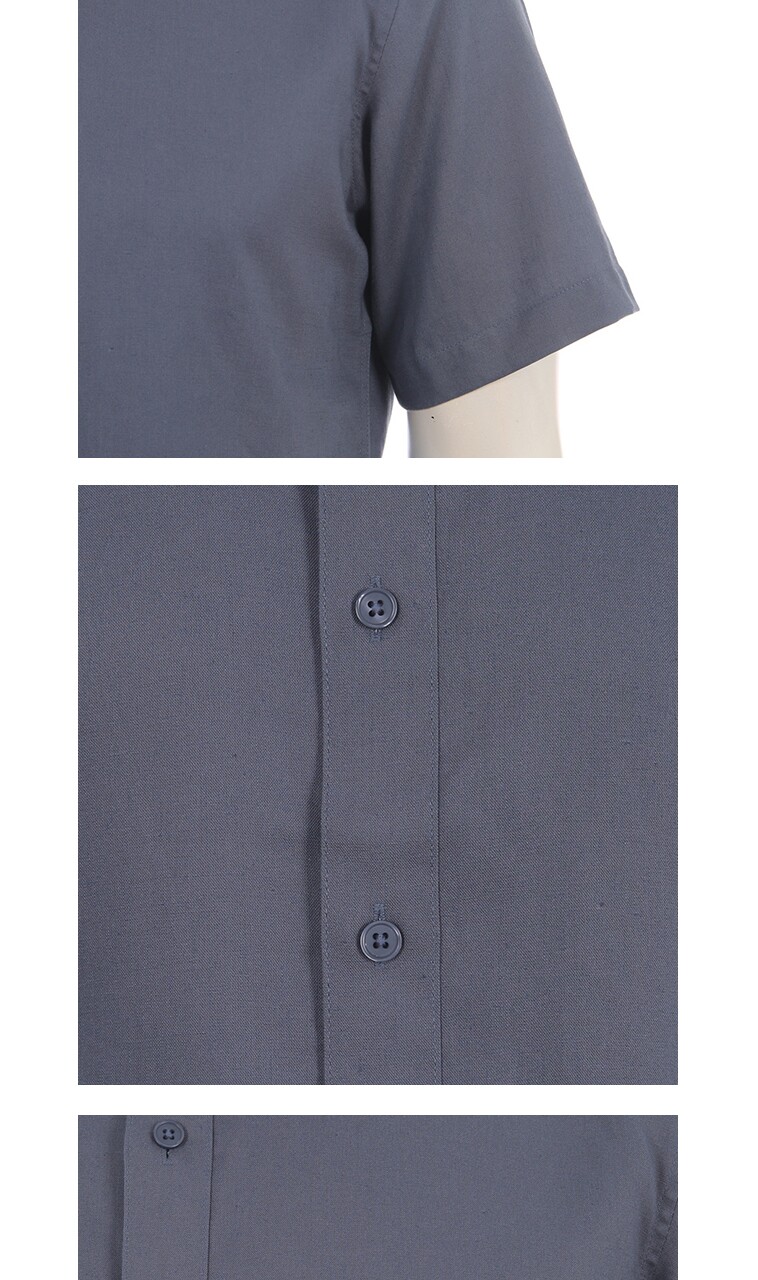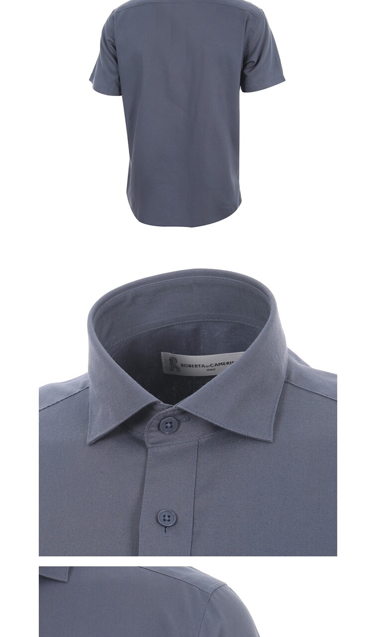 린넨혼방 카키 그레이 솔리드 일반핏 반소매 셔츠 RO2-211-2
