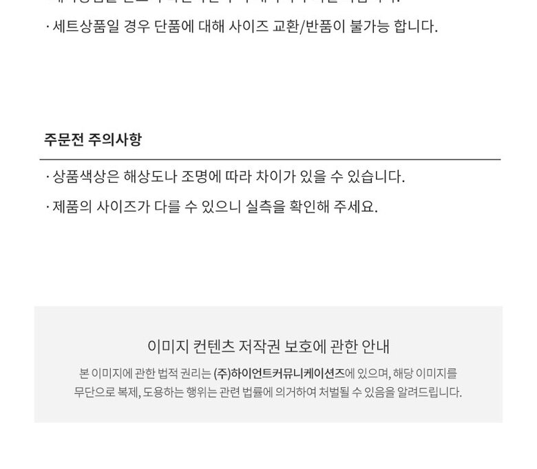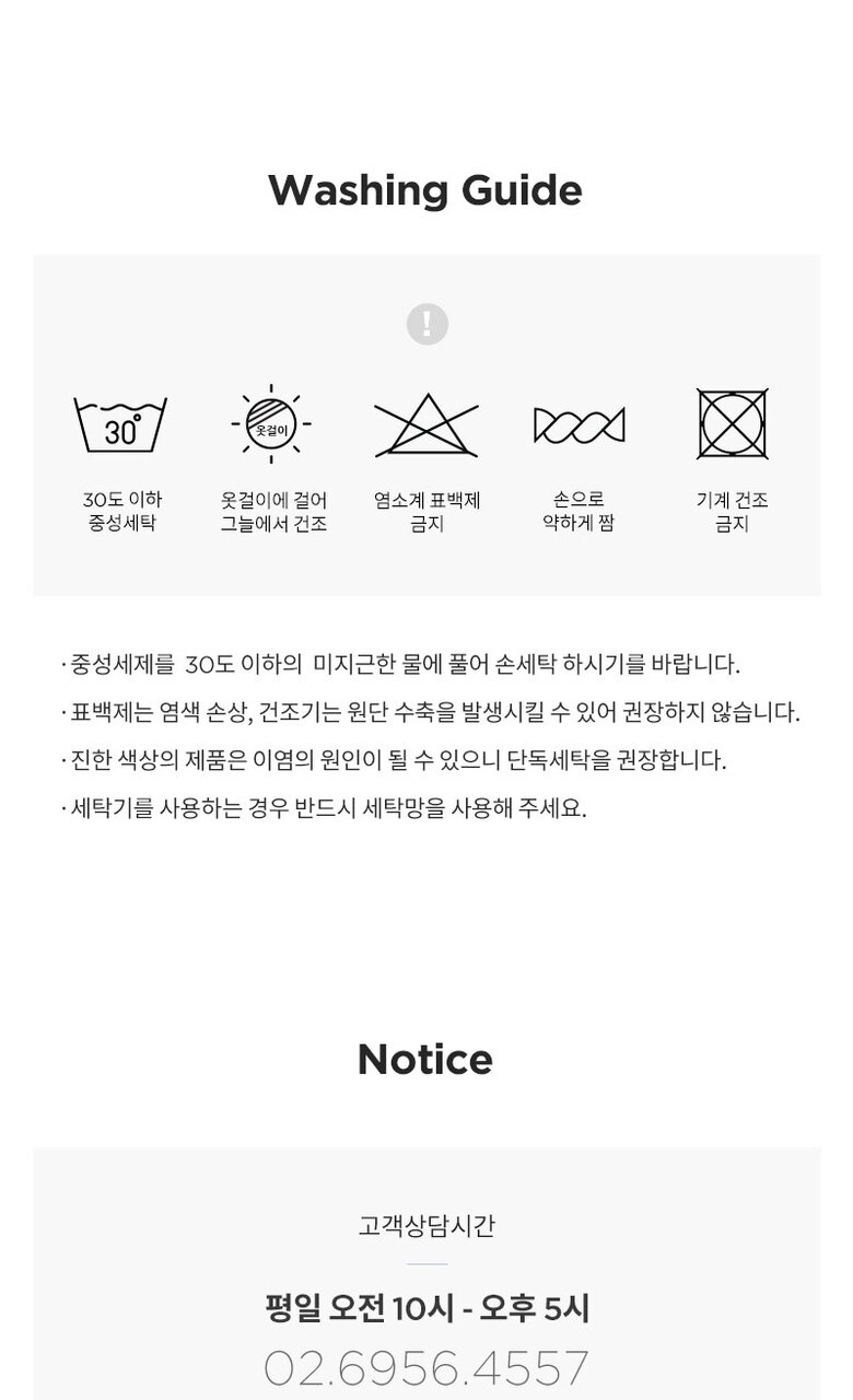 | 6. 세탁방법 및 취급시 주의사항 | 단독 손세탁 권장/염소계 표백제 금지 |