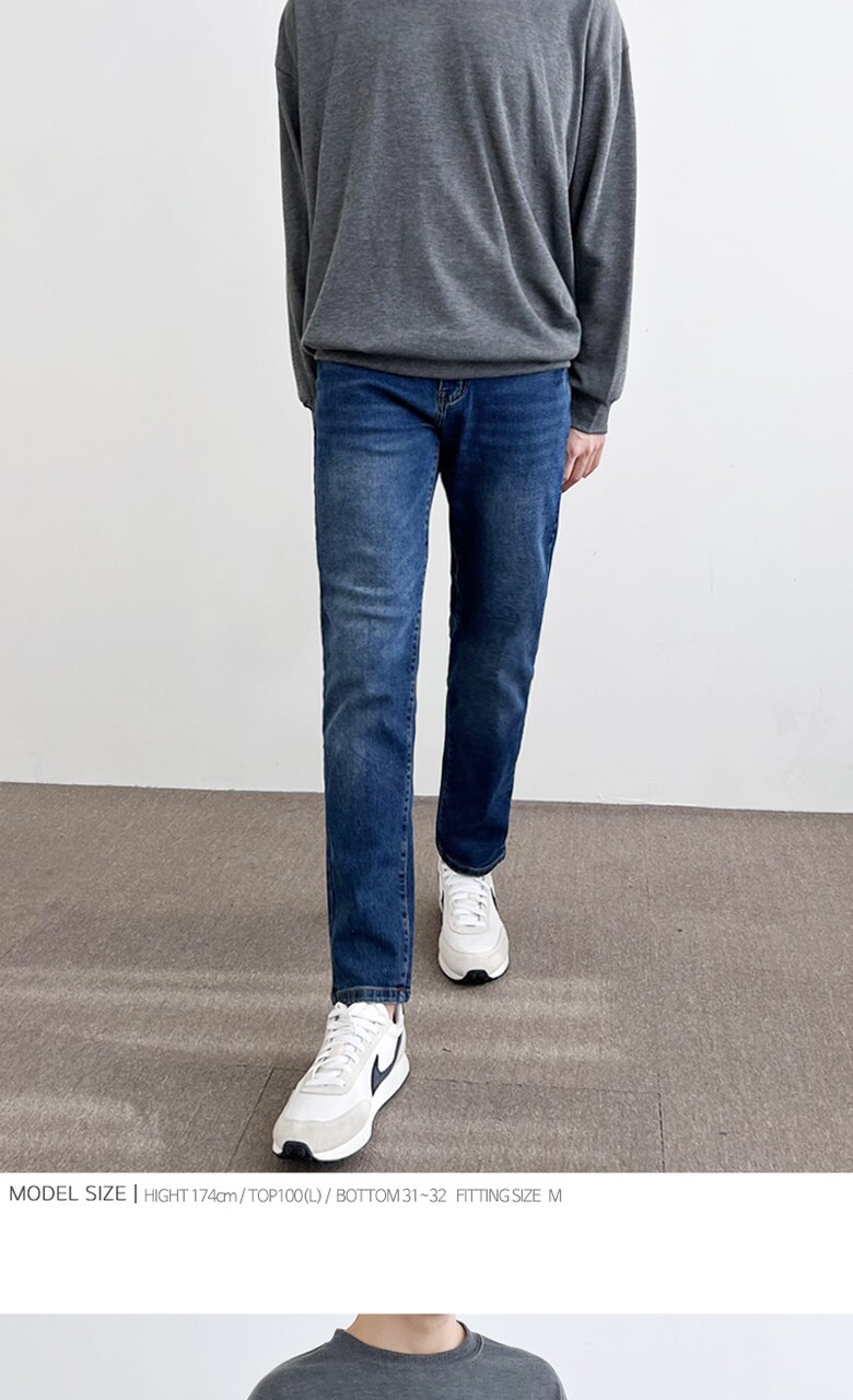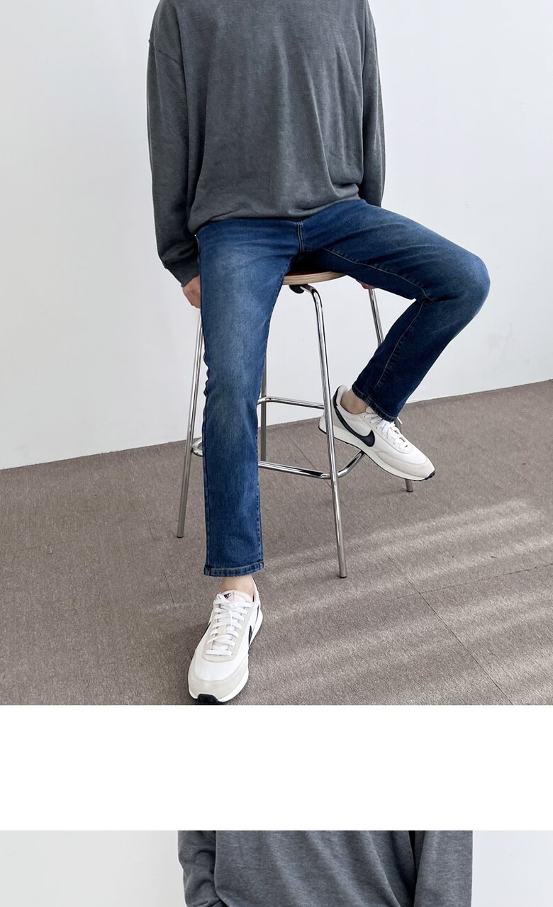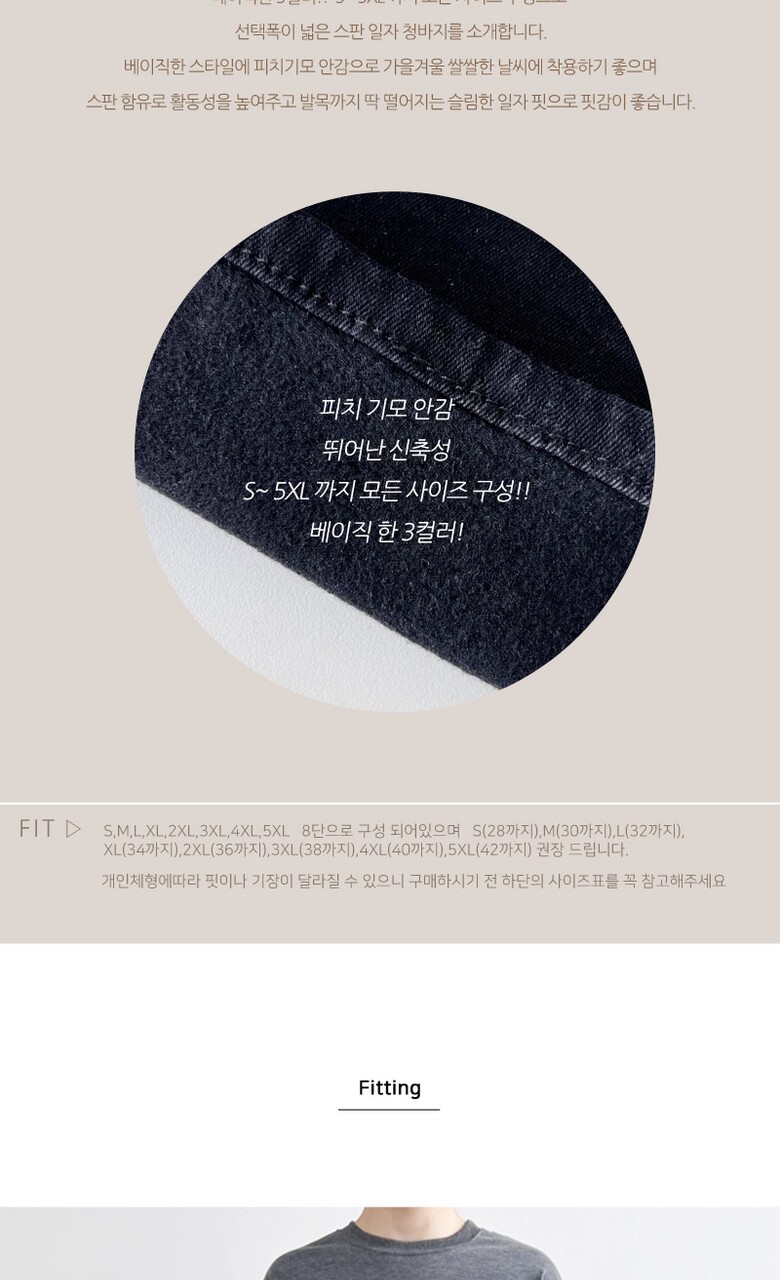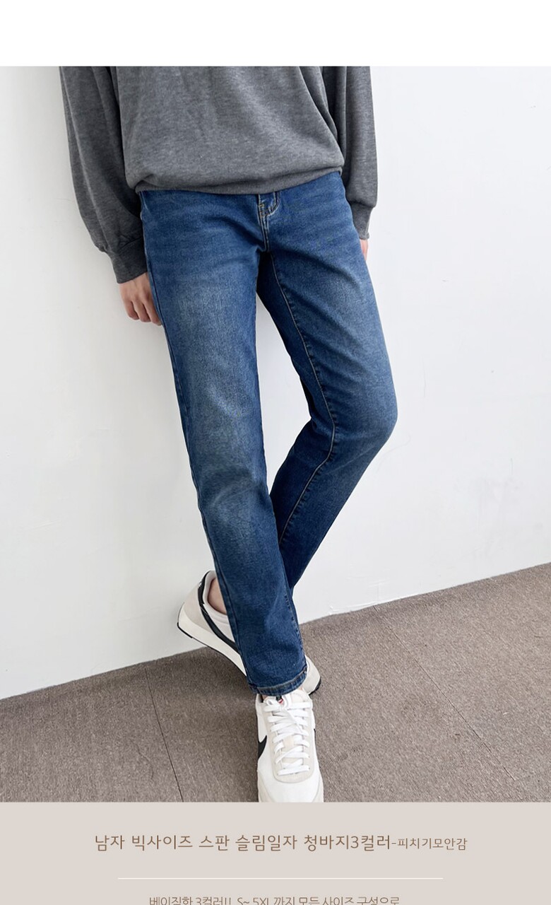 블레오 남자 편한 피치기모 스판 일자 슬림핏 캐주얼 청바지