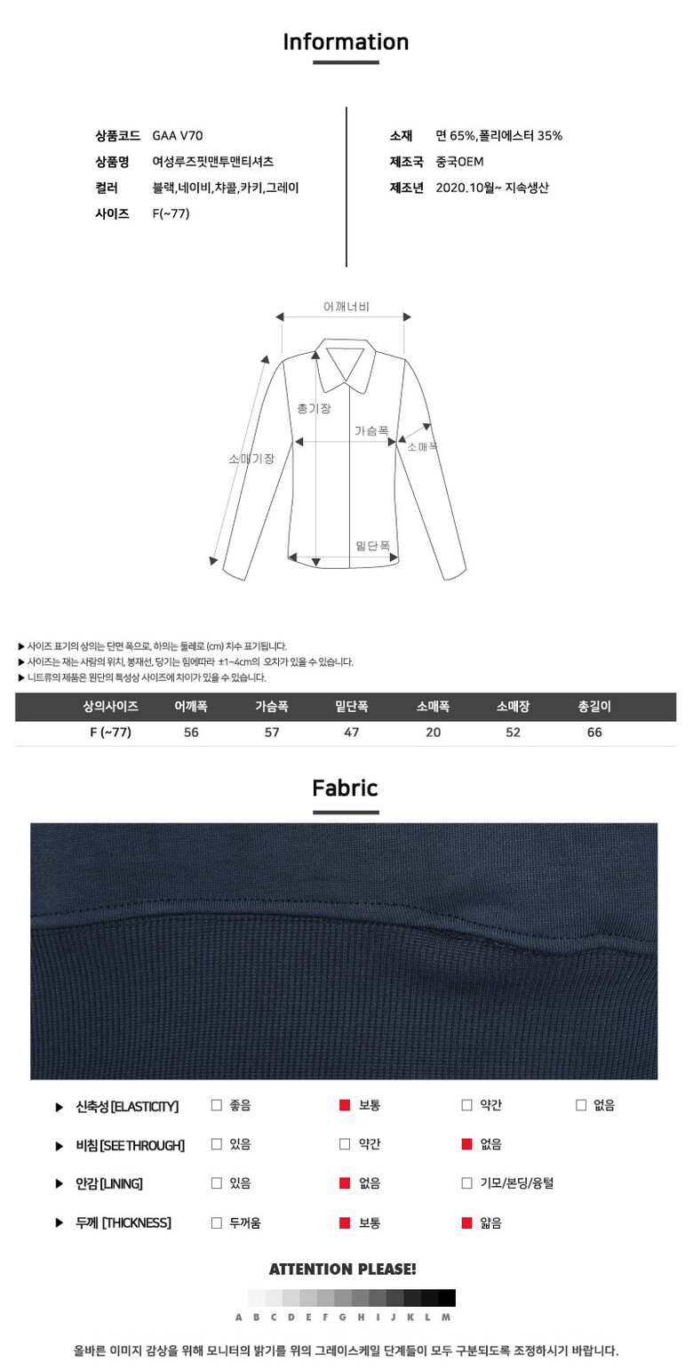블레오 여성 봄 가을 기본 오버핏 라운드넥 맨투맨 티셔츠