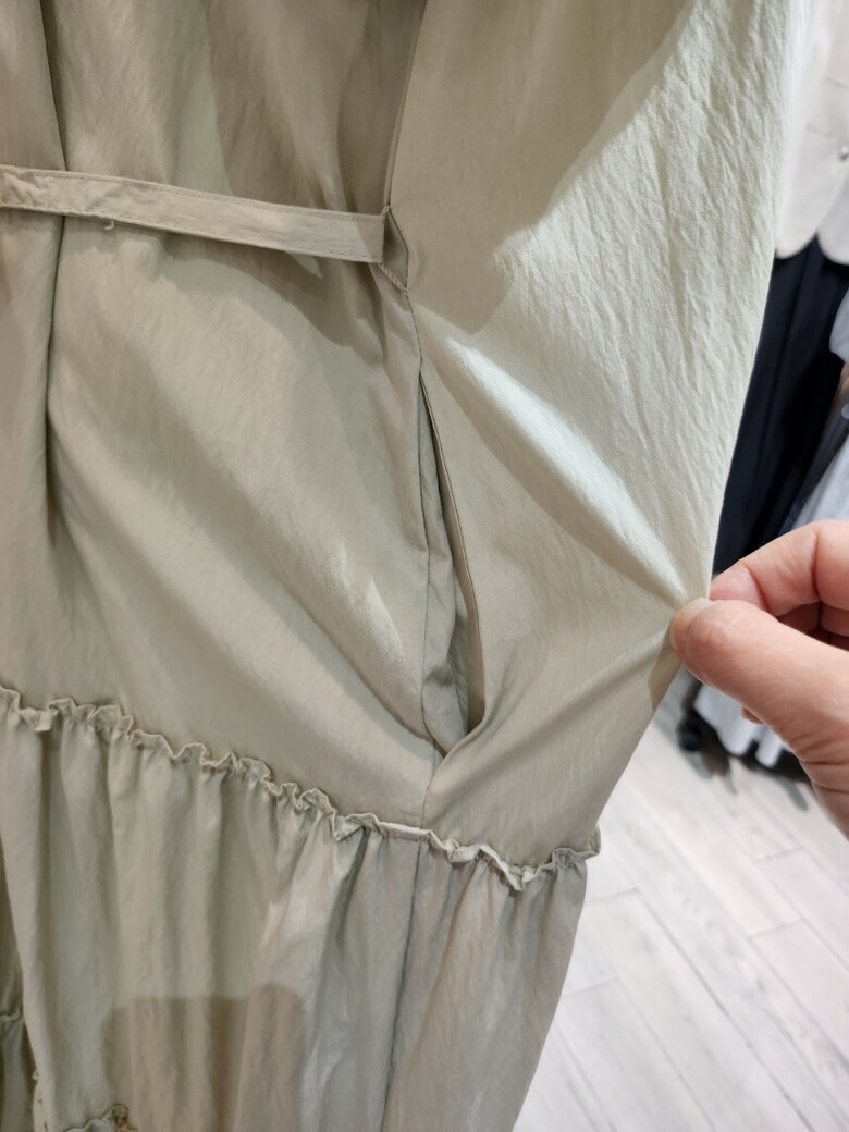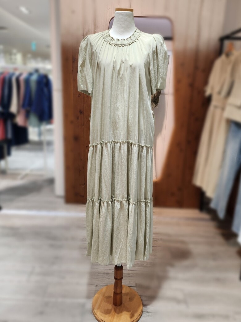 시원한 레이온과 나일론 혼방 소재의 스모킹 넥 원피스입니다.