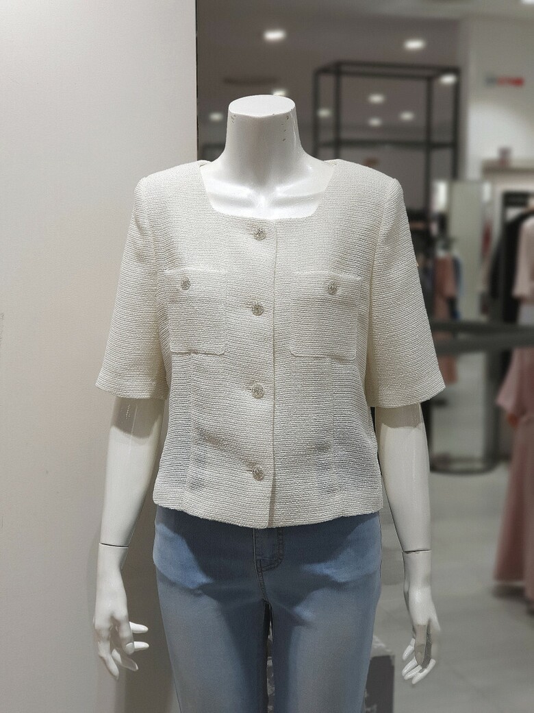 트위드 스퀘어넥 재킷 KWJKOF0200