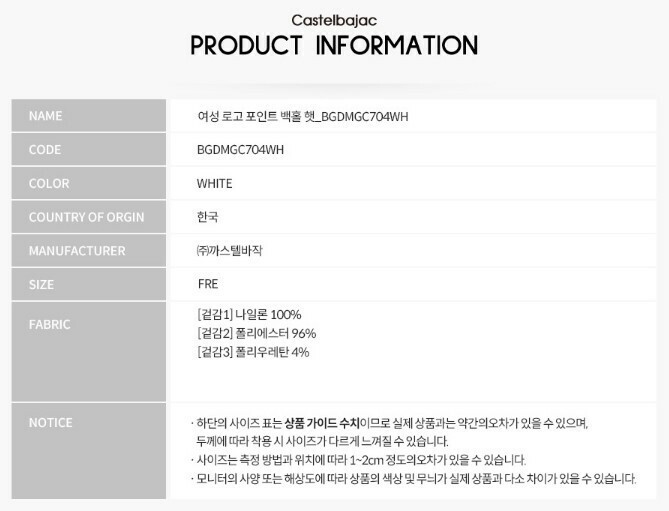 | 1. 품명 및 모델명 | 여성 로고& 하트와펜 포인트 백홀 햇(벙거지st.) |