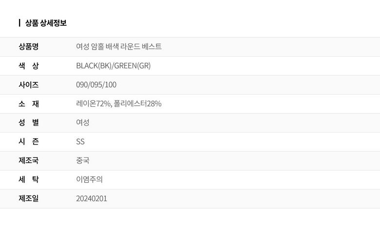 | 2. 색상 | BLACK(BK)/GREEN(GR) |