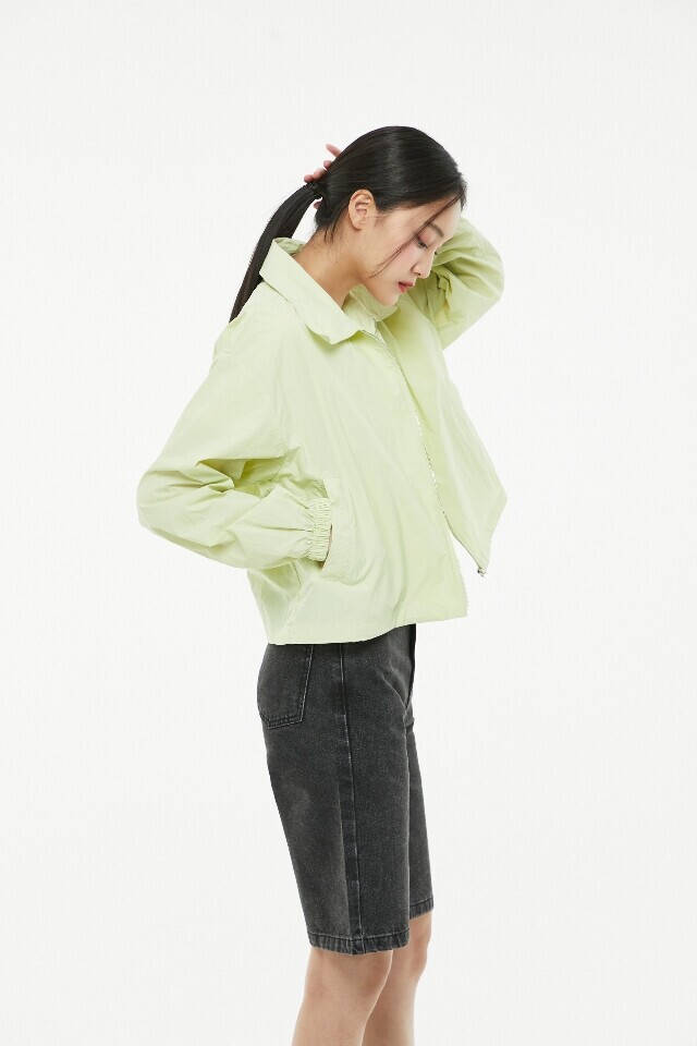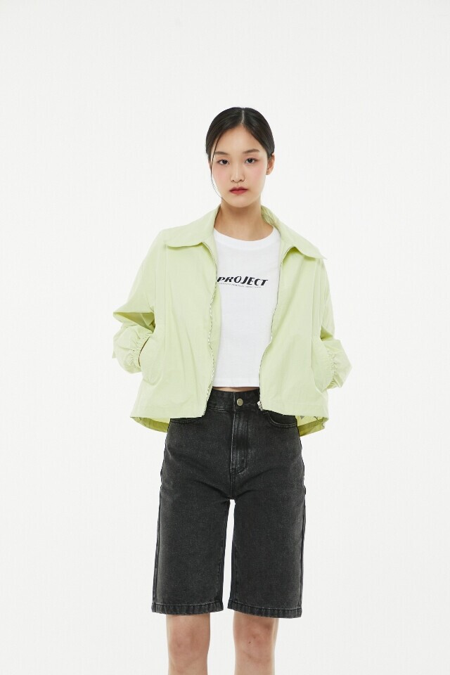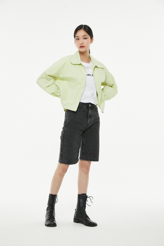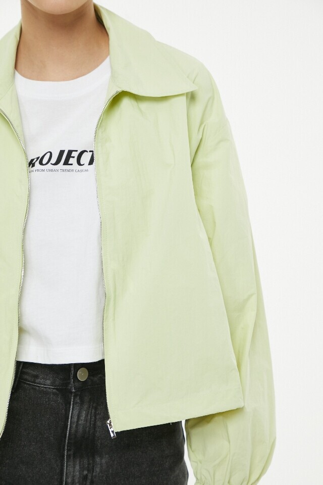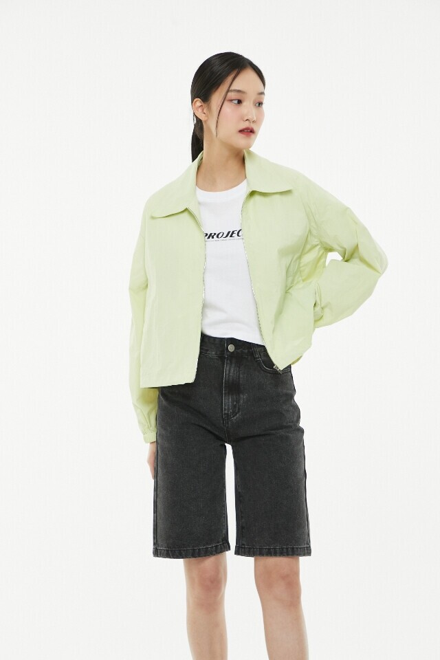 뒤판 레터링 프린트 카라 블루종 점 퍼 ~