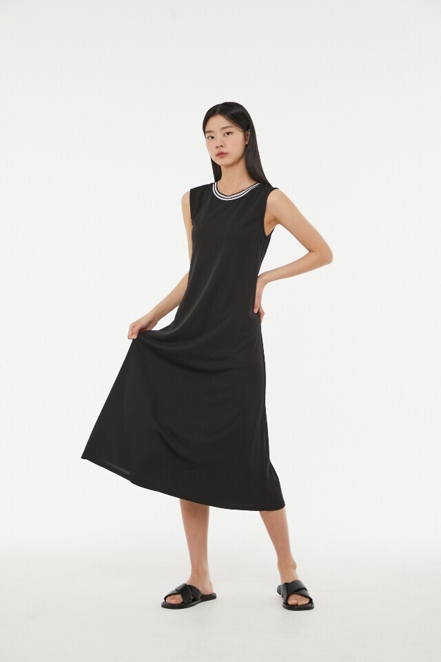 AP2WO563 뒤 혿 트임 배색 나시롱 원피스