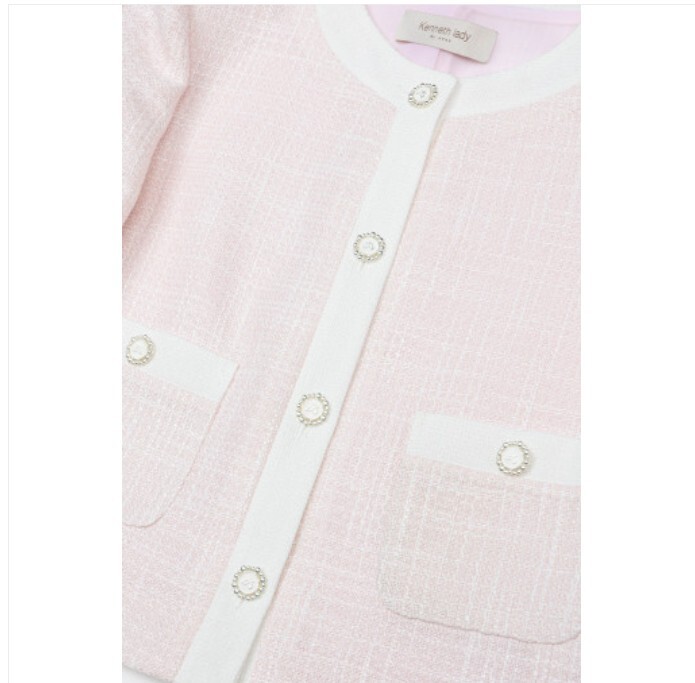 화사한 무드를 연출하는 밝은 컬러감의 썸머 트위드 소재로