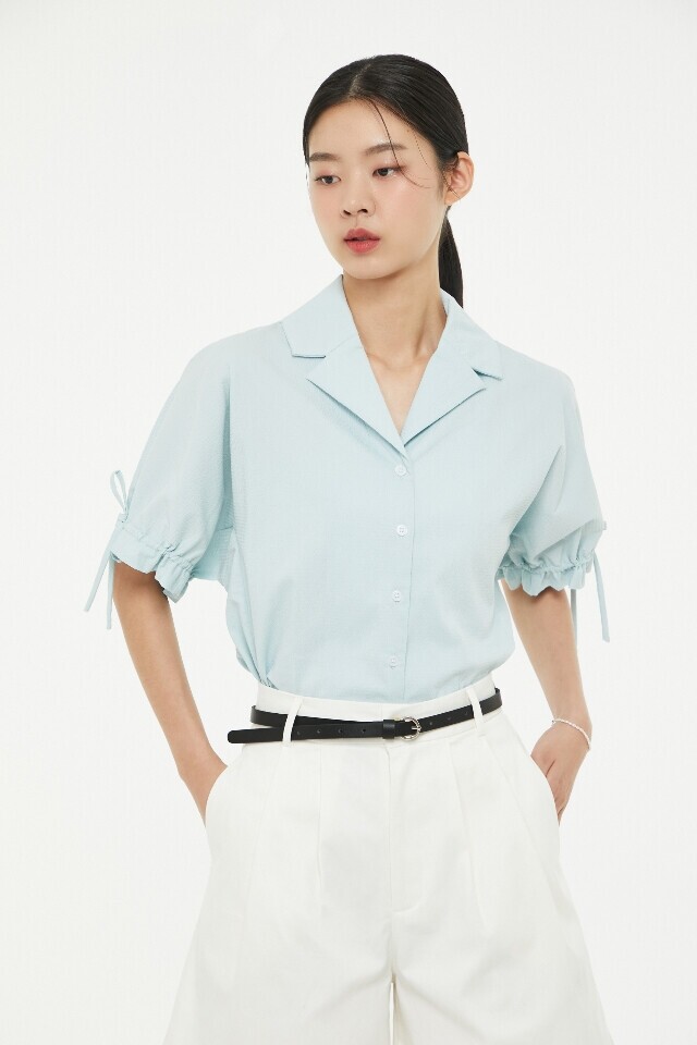 AP2WB566 소매 리본 시어서커 셔츠 블라우스