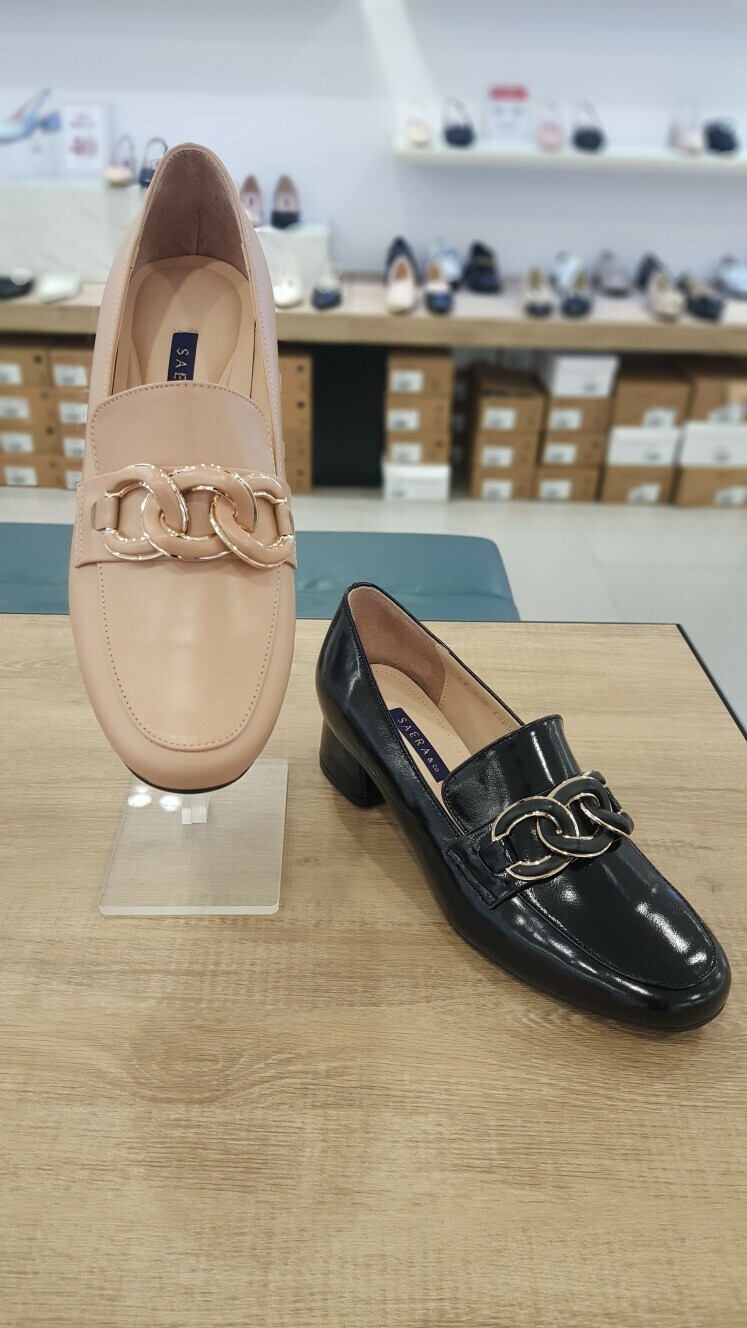 2023 F/W 여성 소가죽 체인장식 로퍼 (4cm) A23P505