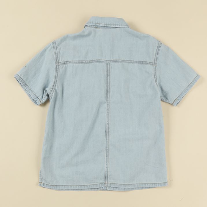 *얇은 아동공용 데님 반팔 셔츠