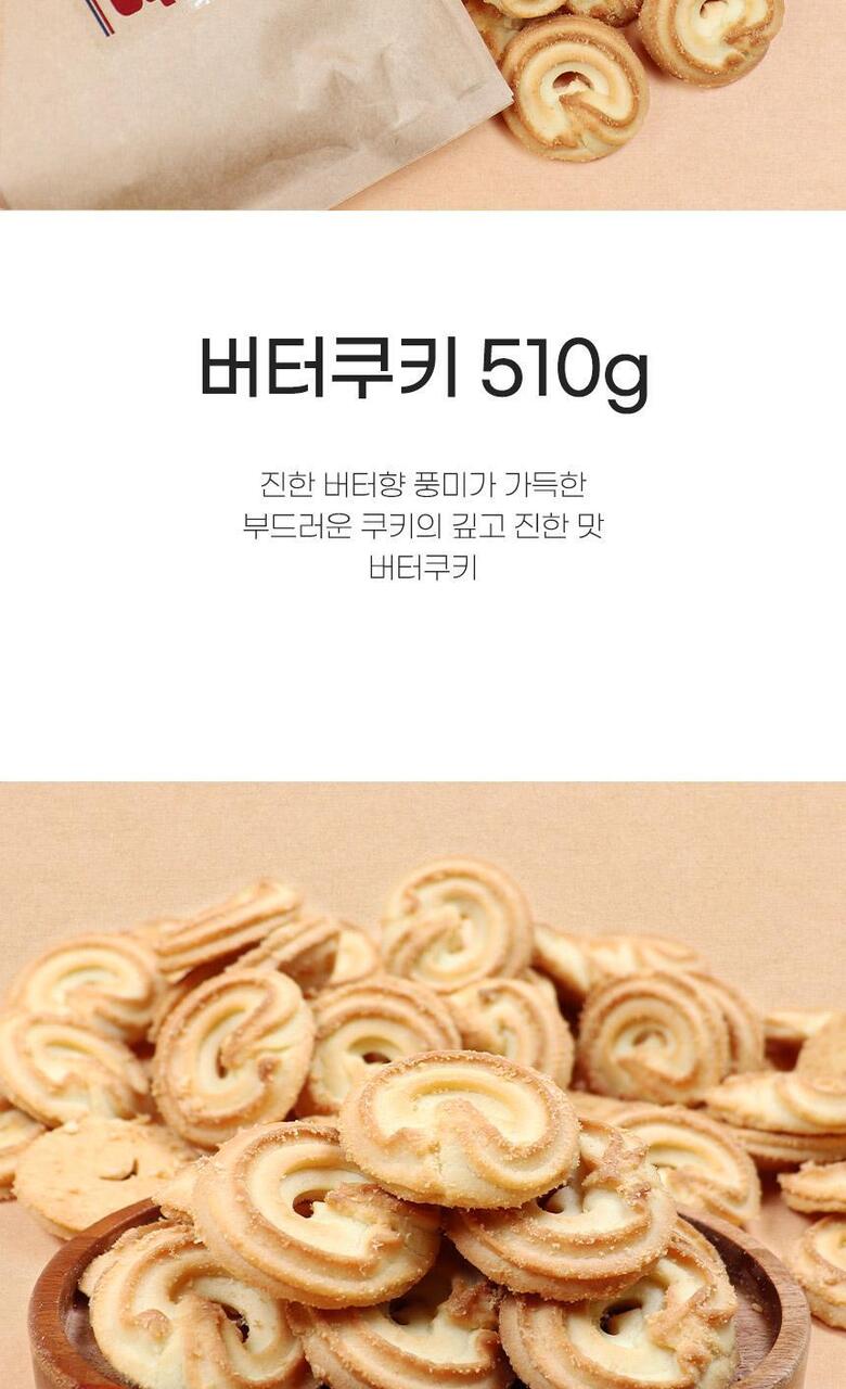 해당 상품은 / [먹다방] 신흥제과 버터쿠키 510g / 구성의 상품입니다.