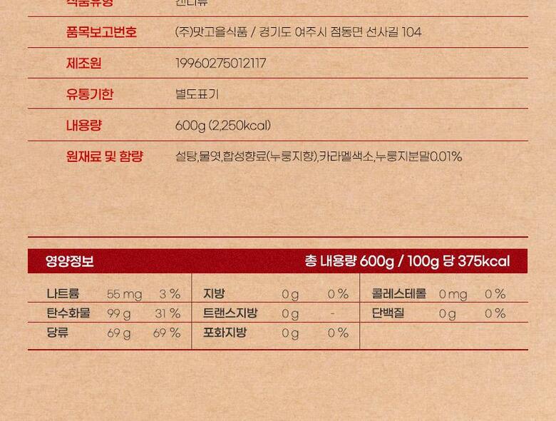 해당 상품은 / [먹다방] 맛고을 누룽지맛사탕 600g / 구성의 상품입니다.