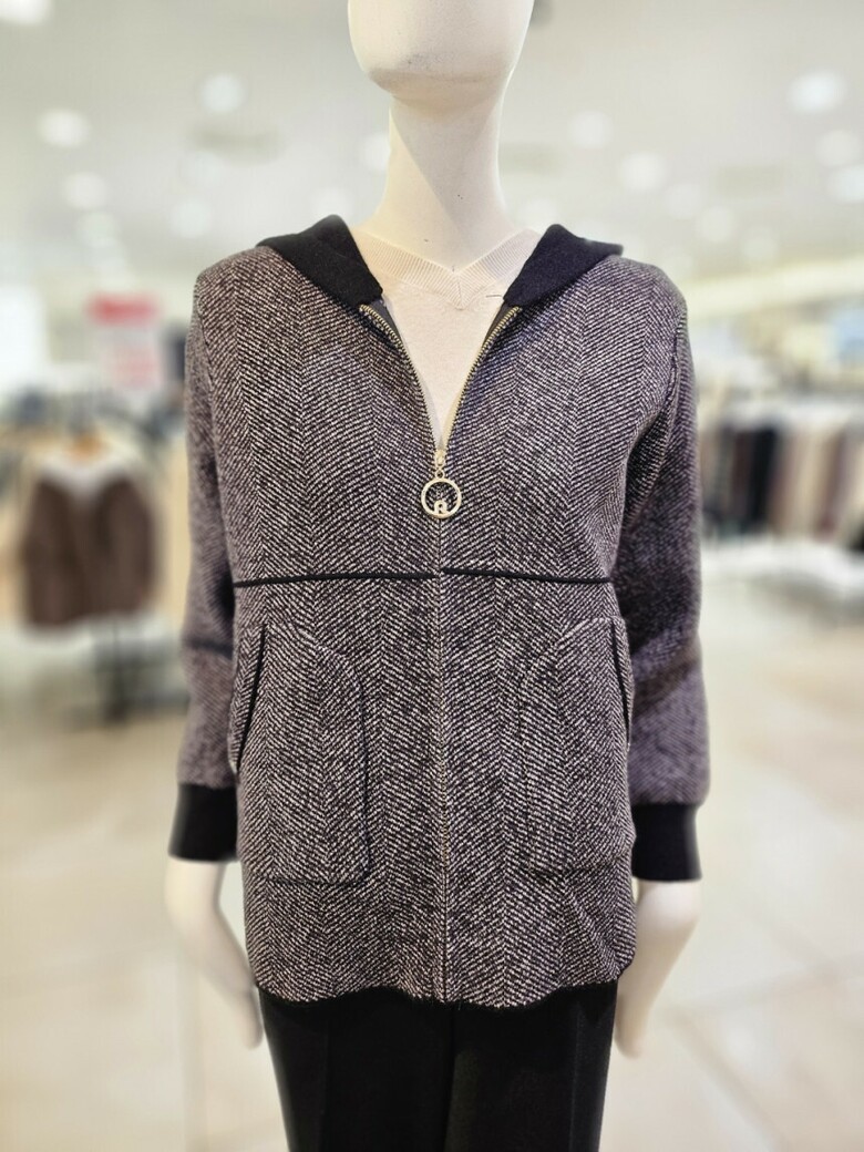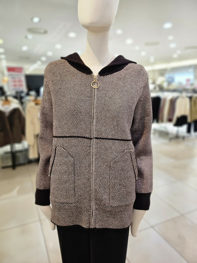 신축성갑인 니트후드점퍼