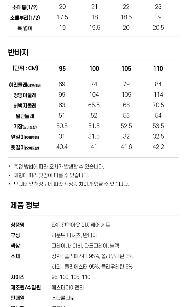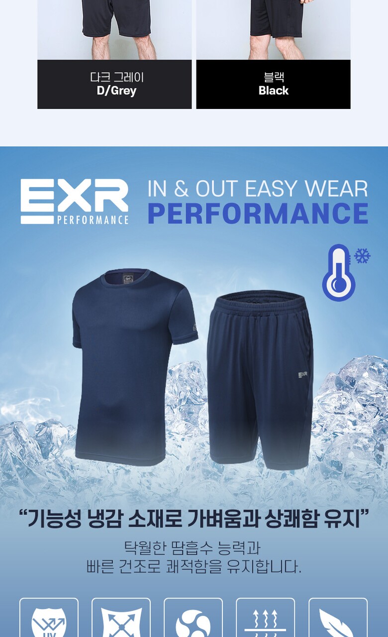 1. 제품 소재 (섬유의 조성 또는 혼용률을 백분율로 표시, 기능성인 경우 성적서 또는 허가서) | [EXR] 남성 인앤아웃 이지웨어 세트 |