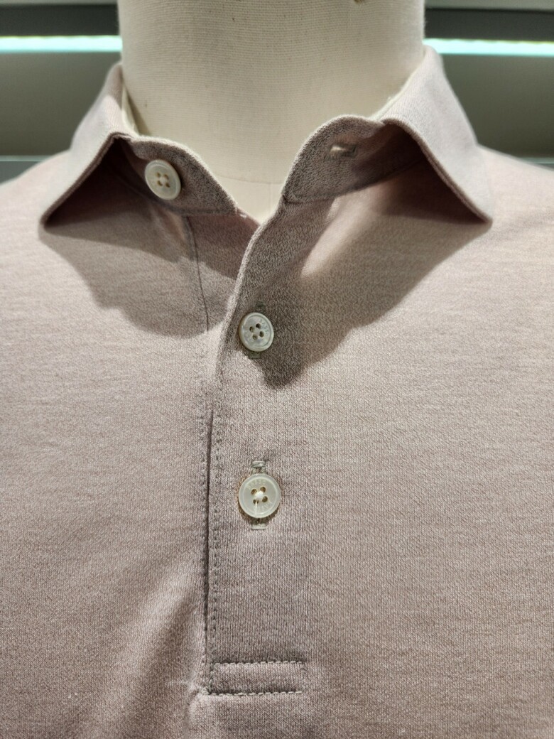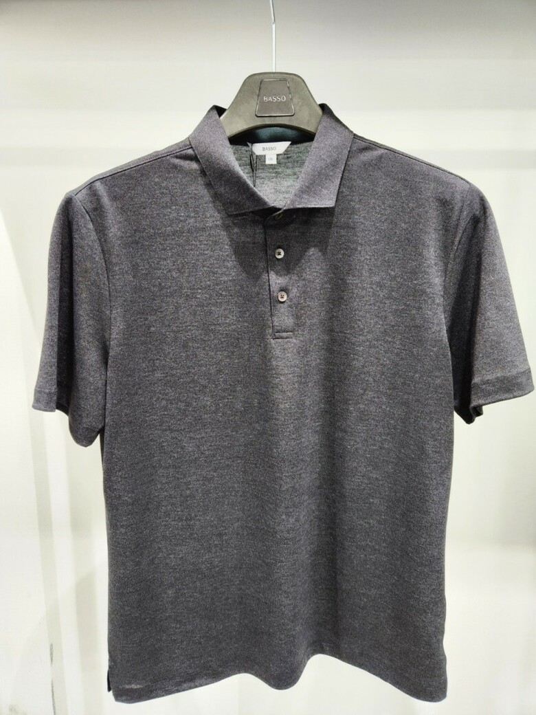 멜란지 원단의 부드러운 기본 카라 티셔츠 입니다.