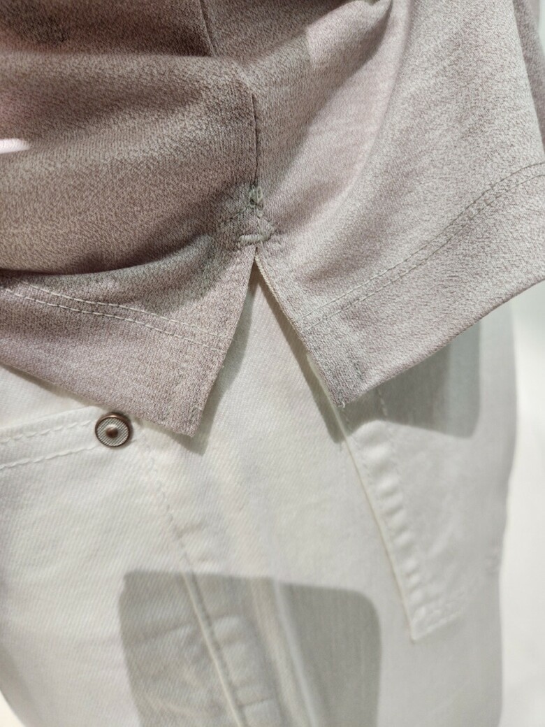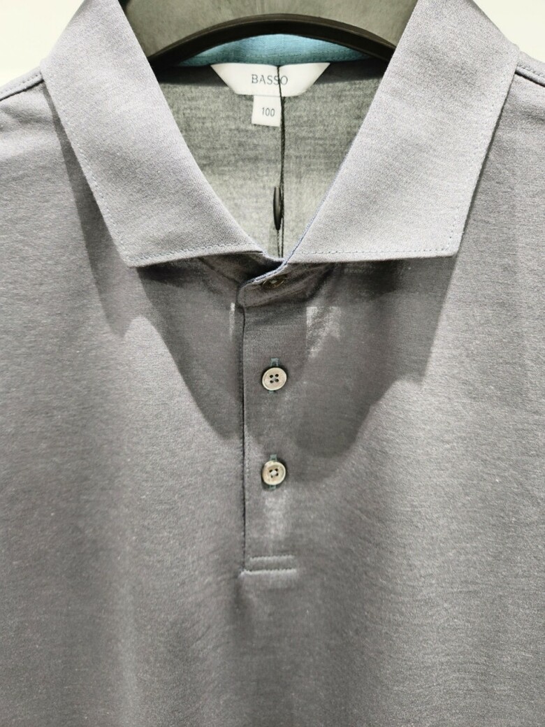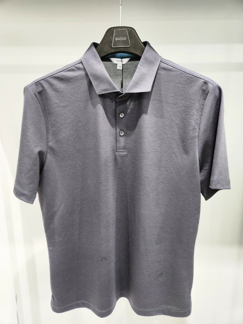 멜란지 원단의 부드러운 기본 카라 티셔츠 입니다.