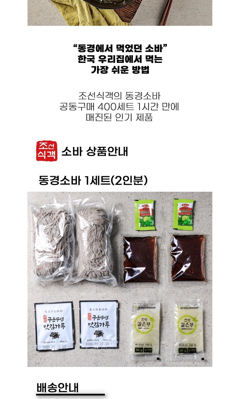 간편 밀키트 조리키트 동경식 소바 메밀국수 모밀국수 2인분