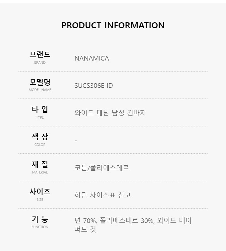 나나미카 NANAMICA SUCS306E ID 와이드 데님 남성 긴바지
