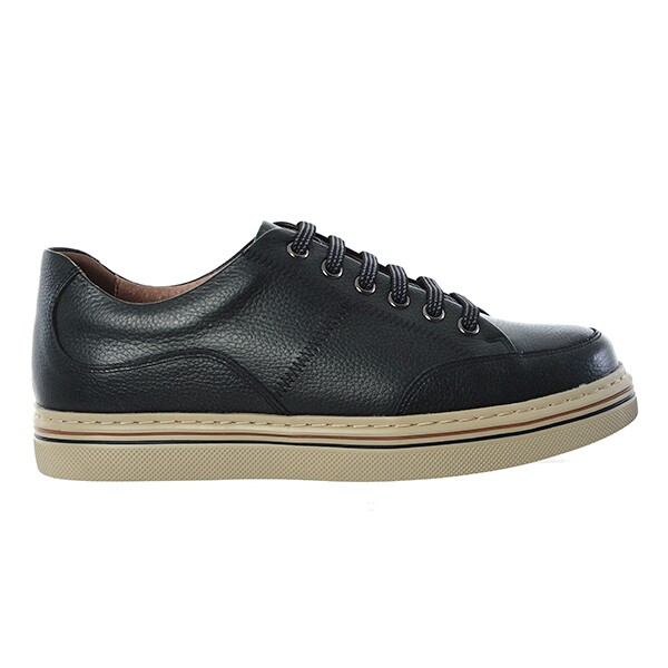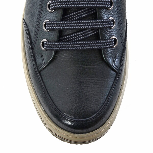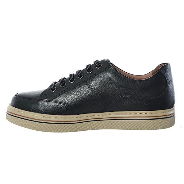 심플한 페블소재에 지그재그 스티치로 포인트를 준 스니커즈.