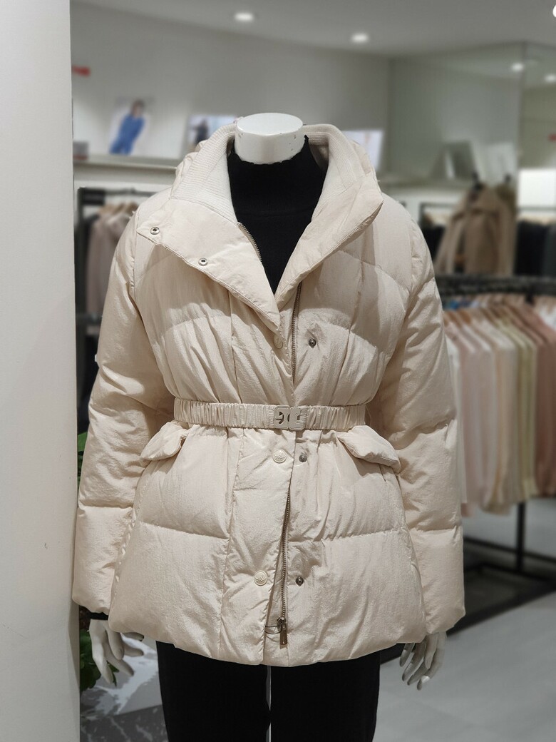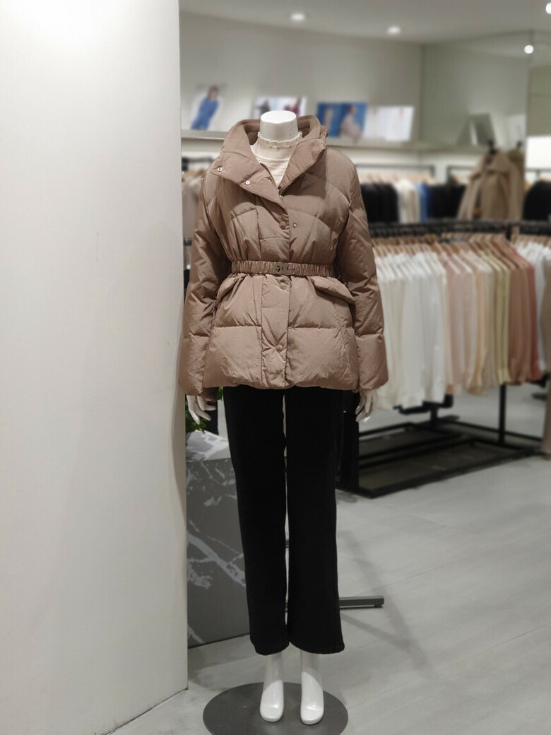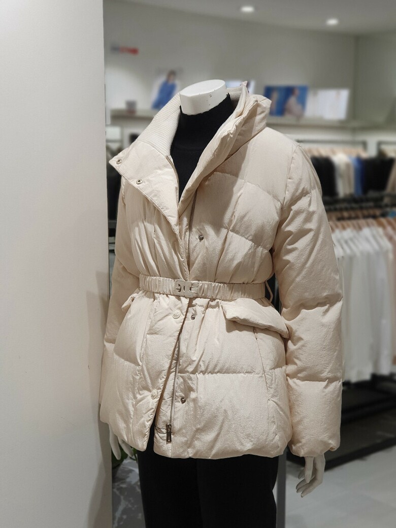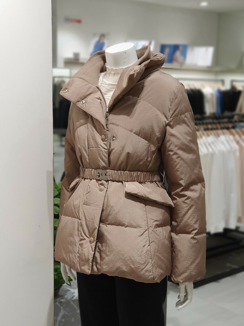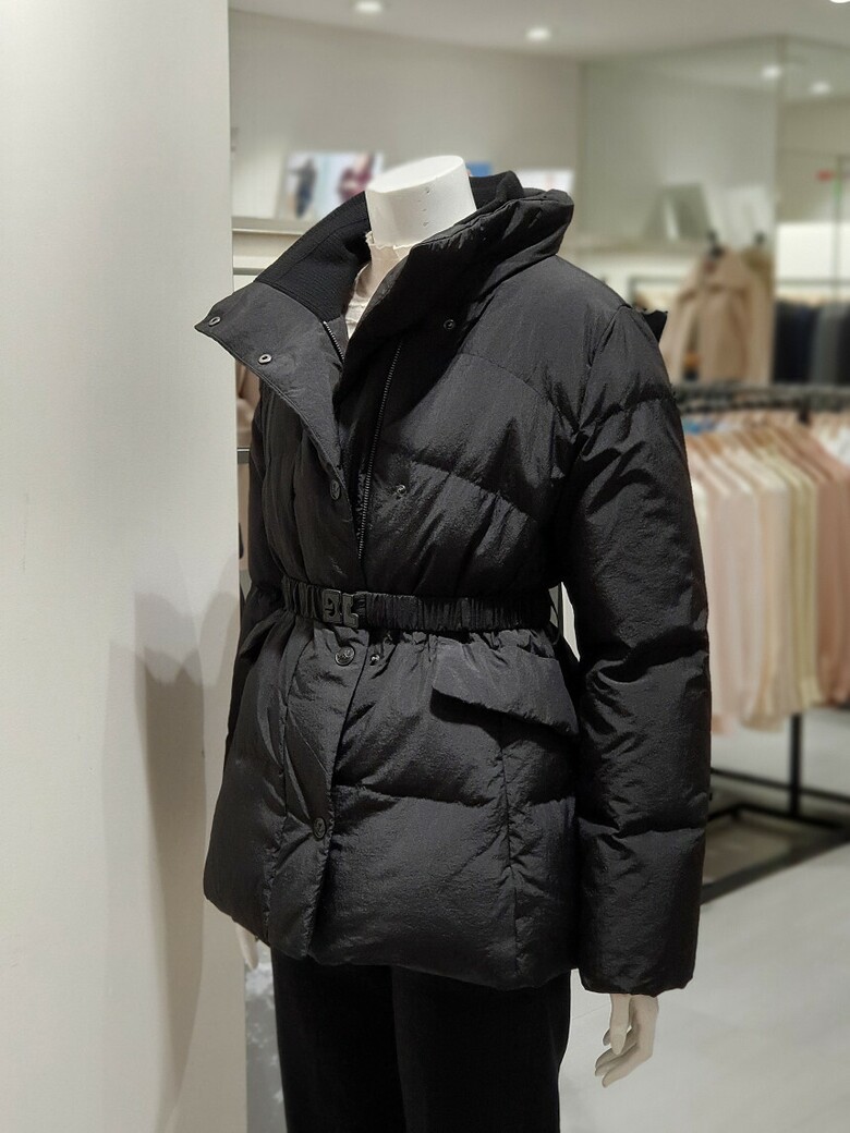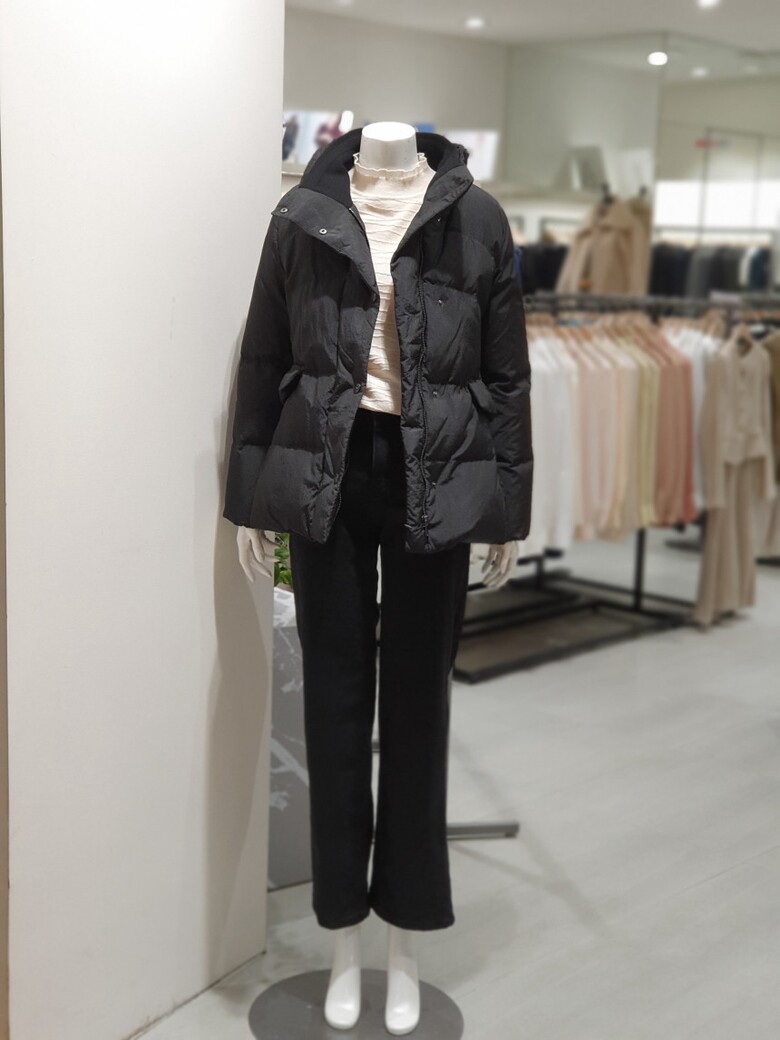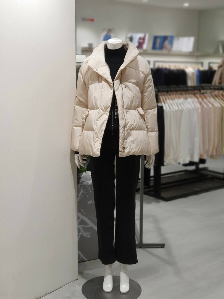 캐주얼한 무드가 느껴지는 하프 기장의 다운 점퍼입니다.