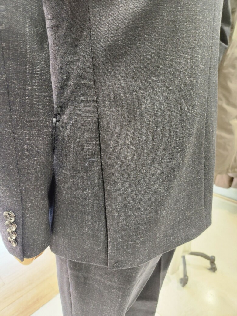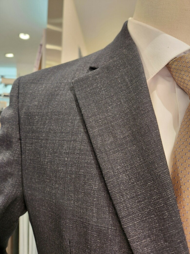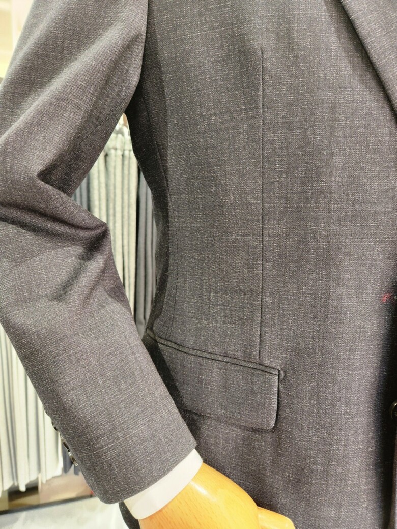 멜란지 원단의 차콜 스트리치 슈트 입니다.