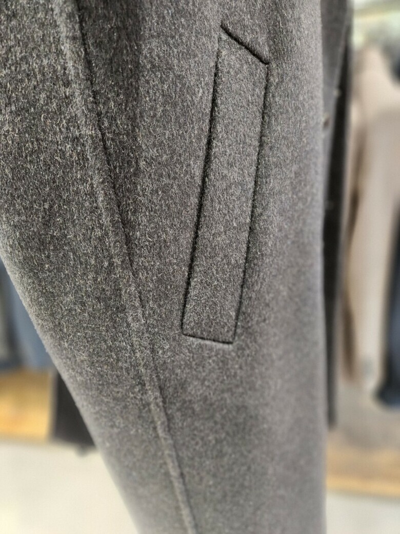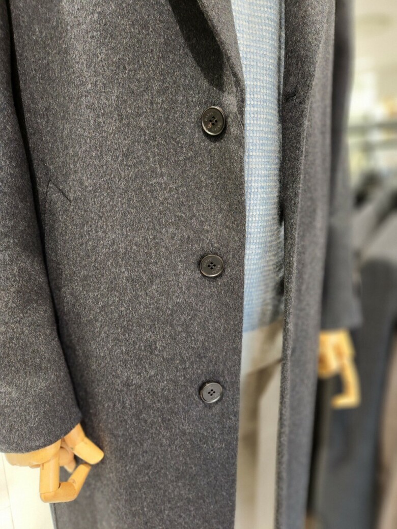 캐시미어와 모 혼방으로 깨끗한 느낌과 실루엣이 좋은 방모 코트 입니다.