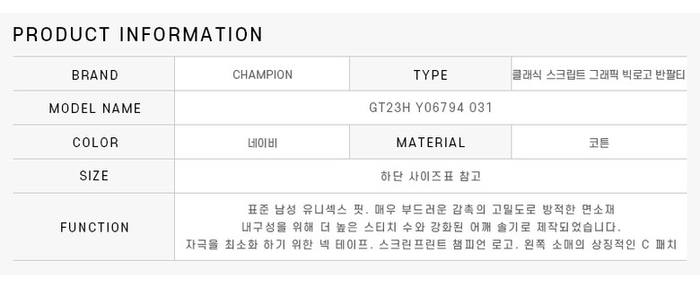 챔피온 반팔 GT23H Y06794 031 클래식 스크립트 그래픽 빅로고 남성반팔티 여성반팔티 당일발송
