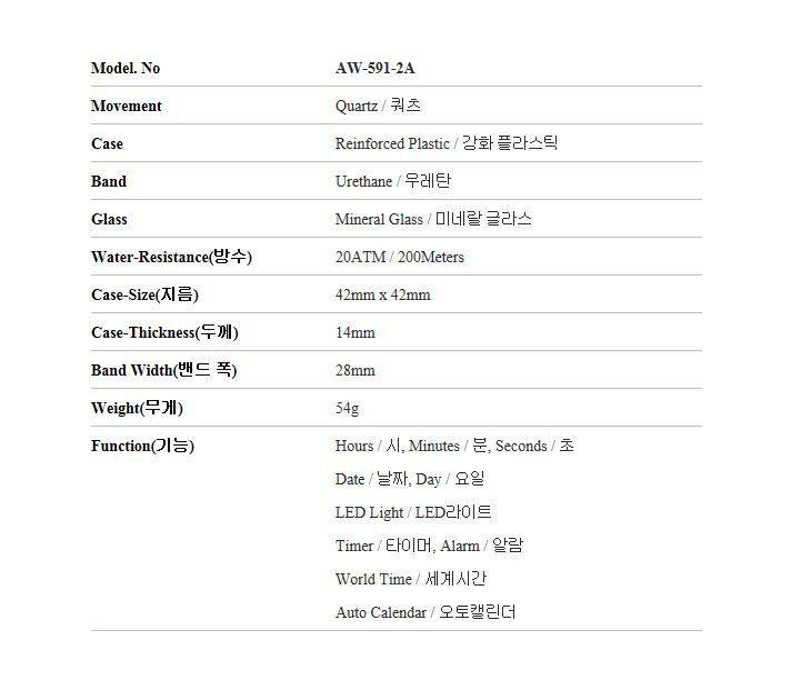 지샥 시계 AW-591-2A 스탠다드 아날로그 디지털 남성우레탄시계 당일발송