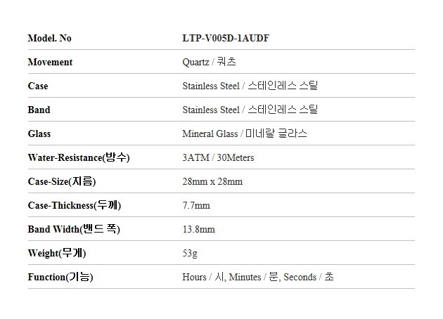 7-2. 시계 - 기능, 방수 등 상세정보참조
