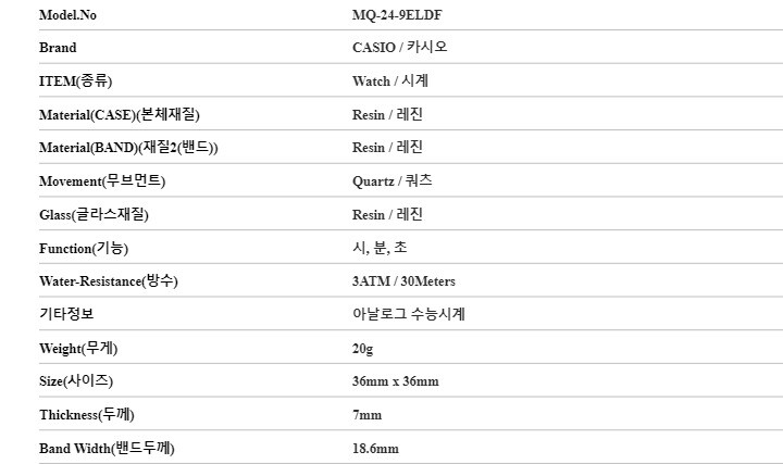| 7-2. 시계 - 기능, 방수 등 | 상세정보참조 |