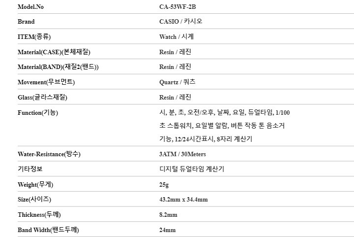 카시오 시계 CA-53WF-2B 데이터뱅크 우레탄시계 당일발송