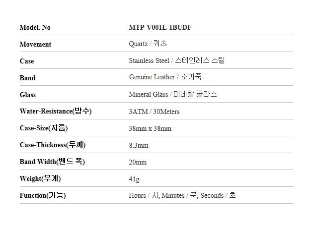 카시오 시계 MTP-V001L-1BUDF (MTP-V001L-1B) 아날로그 남성가죽시계 당일발송