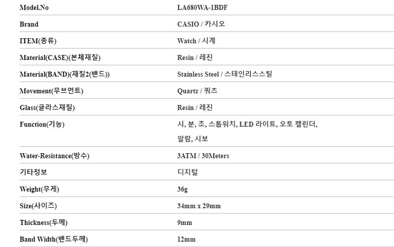 카시오 시계 LA680WA-1BDF (LA680WA-1B) 디지털 메탈시계 당일발송