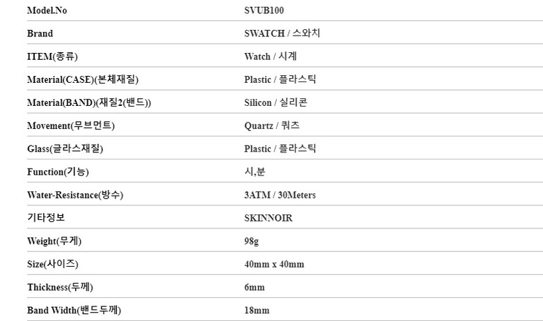 스와치 시계 SVUB100 New Skin SKINNOIR 남성 우레탄시계 당일발송