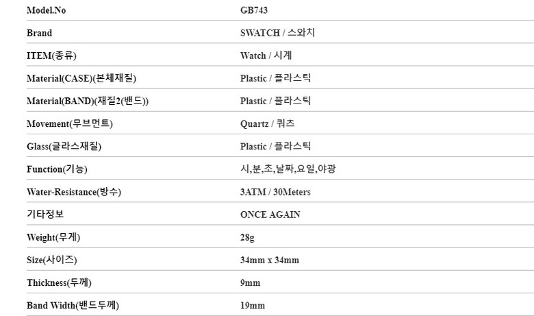 스와치 시계 GB743 Irony Big Classic ONCE AGAIN 공용 우레탄시계 당일발송