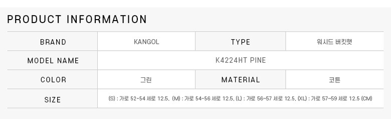 캉골 모자 K4224HT PINE (4224) 워시드 버킷햇 벙거지 남성모자 여성모자 당일발송