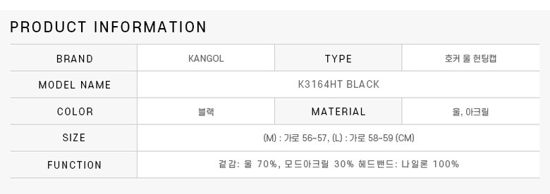 캉골 모자 K3164HT BLACK (3164) 호커 울 헌팅캡 남성모자 여성모자 당일발송