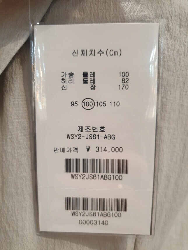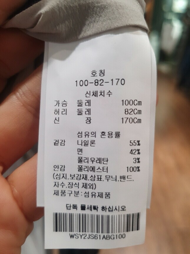 겉감 : 나일론 52% , 면 42% , 폴리우레탄 3%
