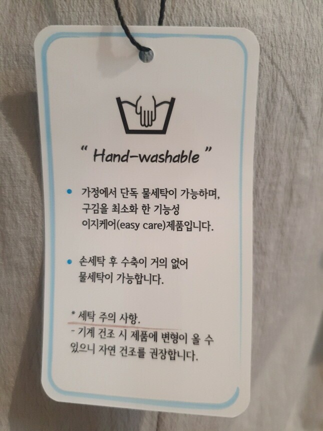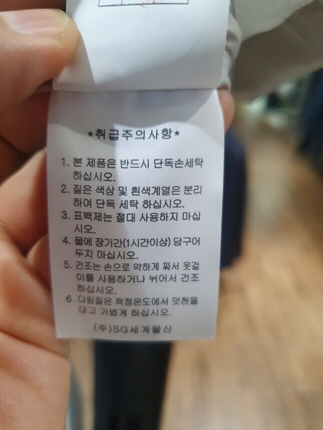 | 6. 세탁방법 및 취급시 주의사항 | 드라이크리닝 |