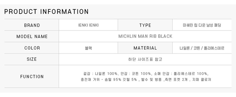 옌키옌키 패딩 MICHLIN MAN RIB BLACK 미쉐린 립 다운 남성패딩 당일발송