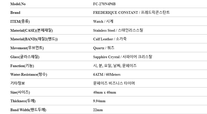 | 3. 제조사 | 프레드릭콘스탄트/(주)언커먼레이블-병행수입 |
