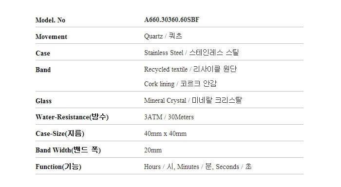 몬데인 시계 A660.30360.60SBF 클래식 포레스트 그린 코르크 리사이클 나토시계 남성시계 여성시계 당일발