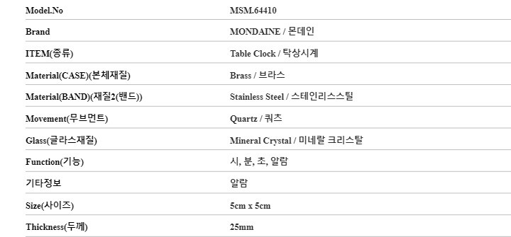 몬데인 시계 MSM.64410 탁상시계 케이스백 당일발송